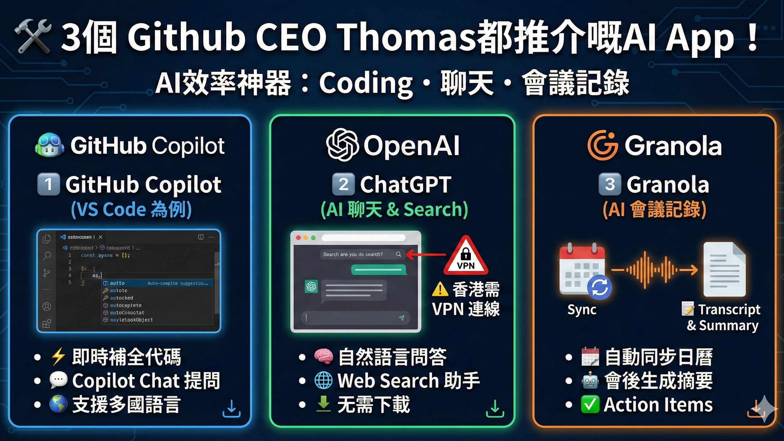 ⚒️ 3個Github CEO Thomas大推嘅AI App!生產力UP☝️